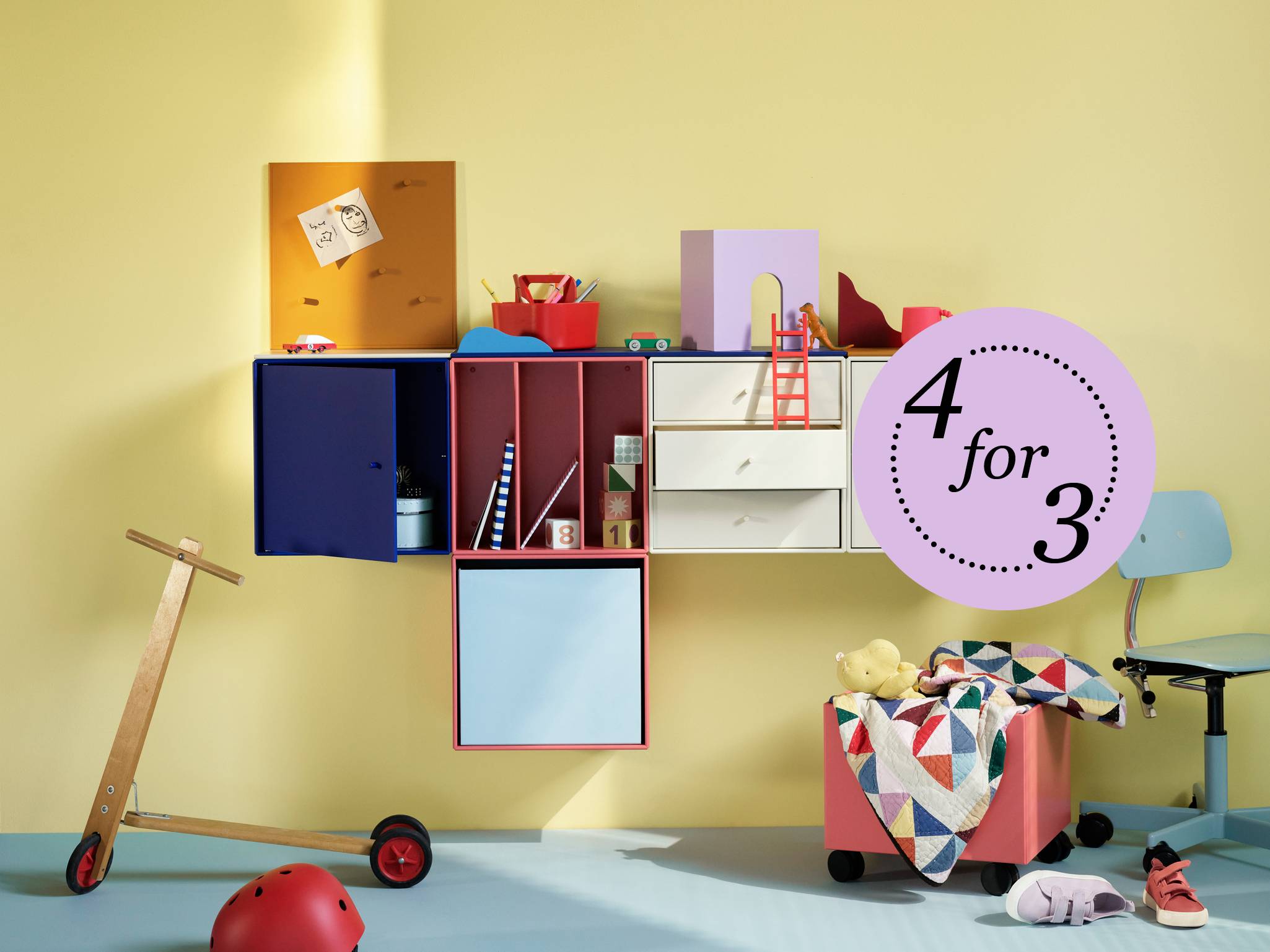 I hele marts måned kan du hos Timm Møbler få 4 Montana Mini elementer for 3 elementers pris.